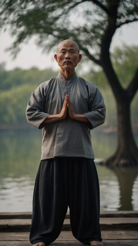 Leonardo_Kino_XL_a_tai_chi_warrior_without_arms_standing_in_a_1